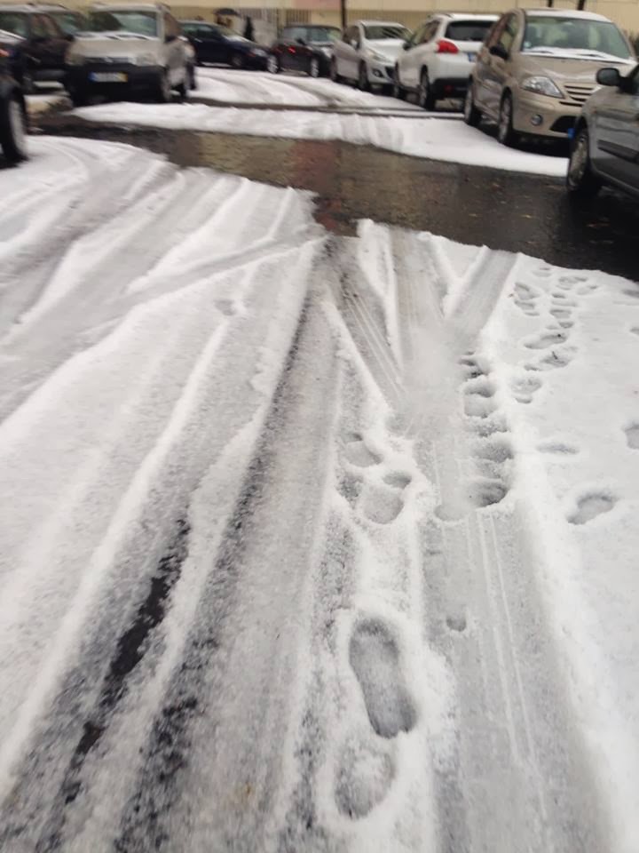 A chuva e o granizo desta manhã deixaram a Estrada de Benfica intransitável e as restantes zonas sob um manto branco.