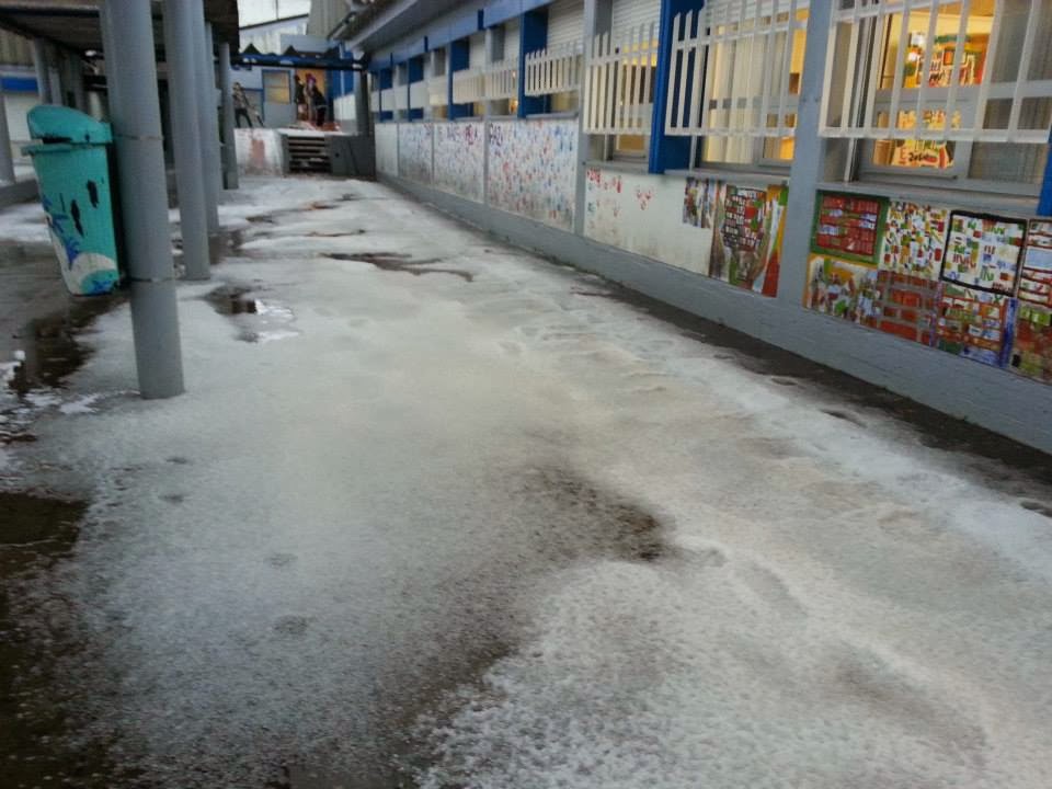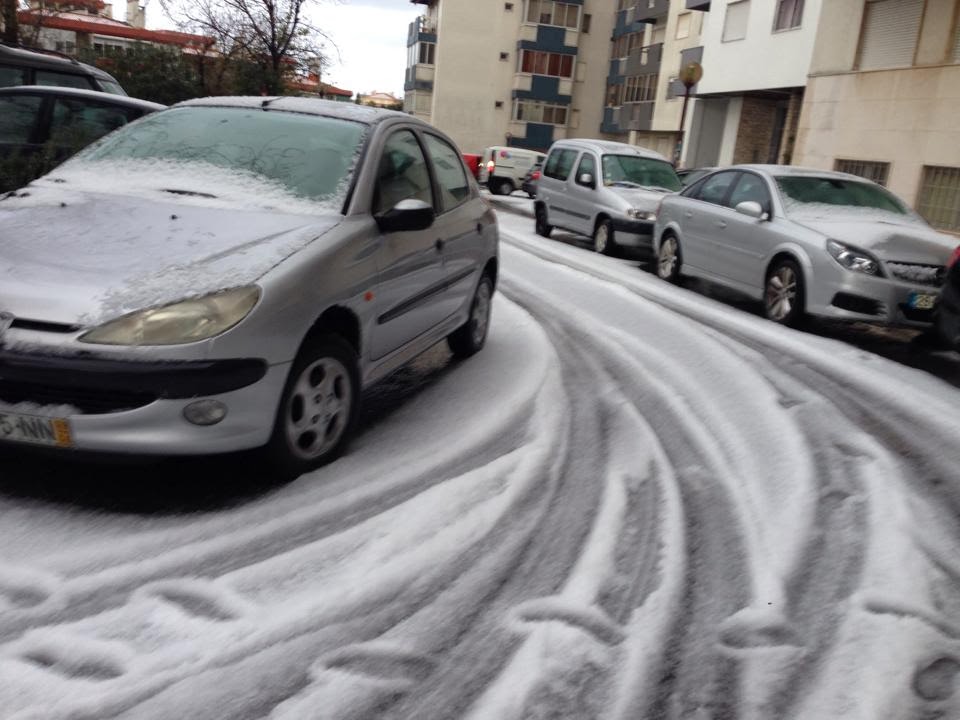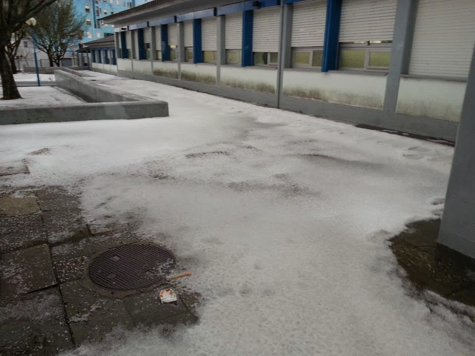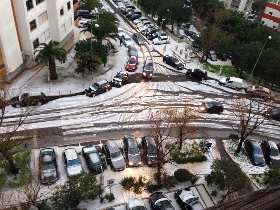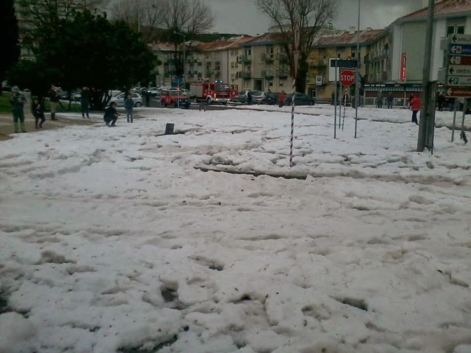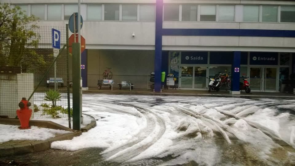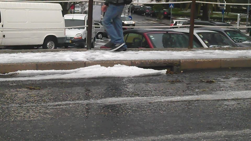 Esta manhã uma tempestade de granizo deixou Carnaxide debaixo de um manto branco. De acordo com a SIC, a "neve" chegou aos 40 cm de altura.